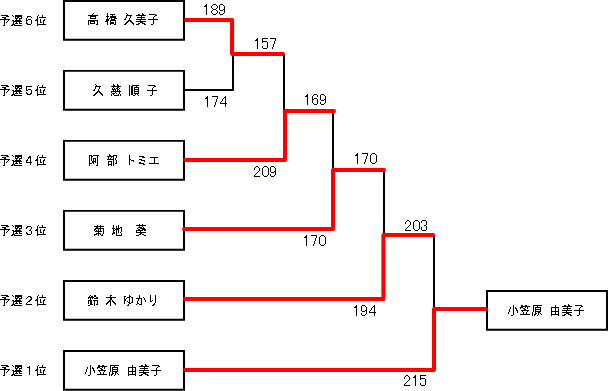 ☆女子ミドルの部 | 順位 | 選手名 | 所 属 | 得 点 | | 1位 | 小笠原由美子 | ムラタ | 5,469 | | 2位 | | | | |