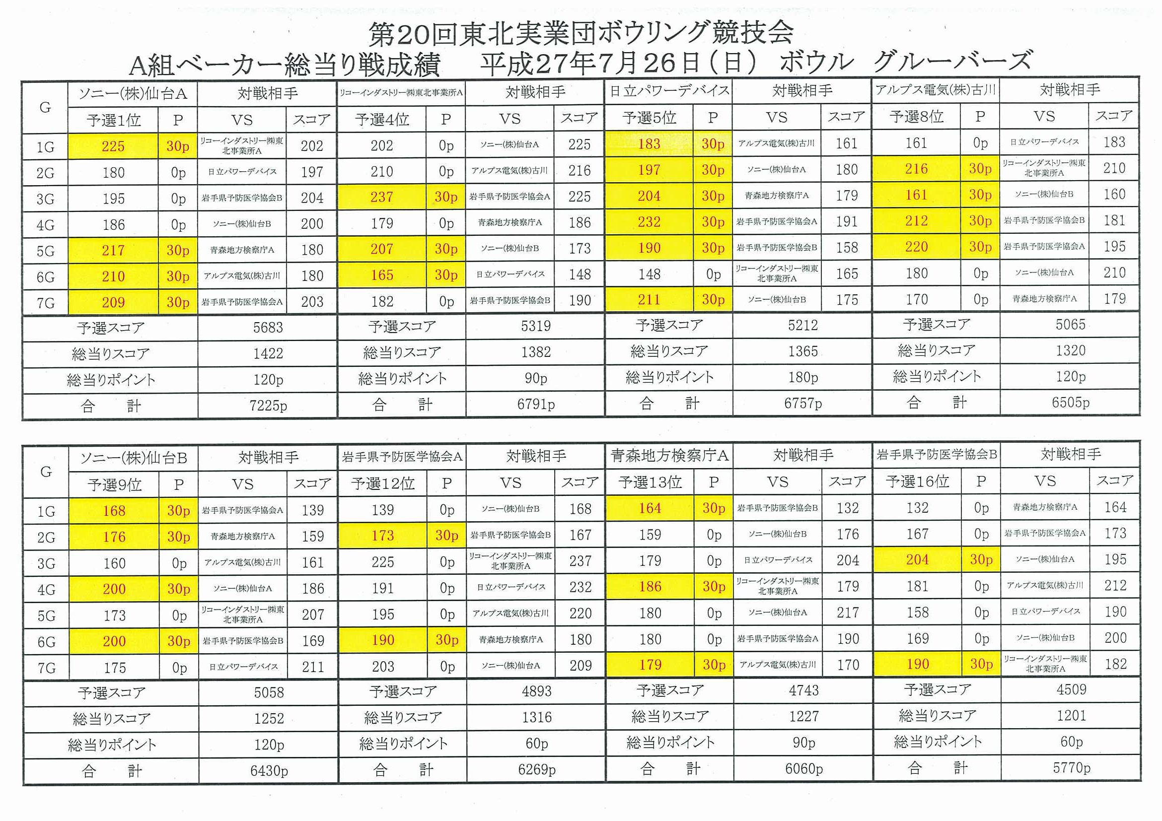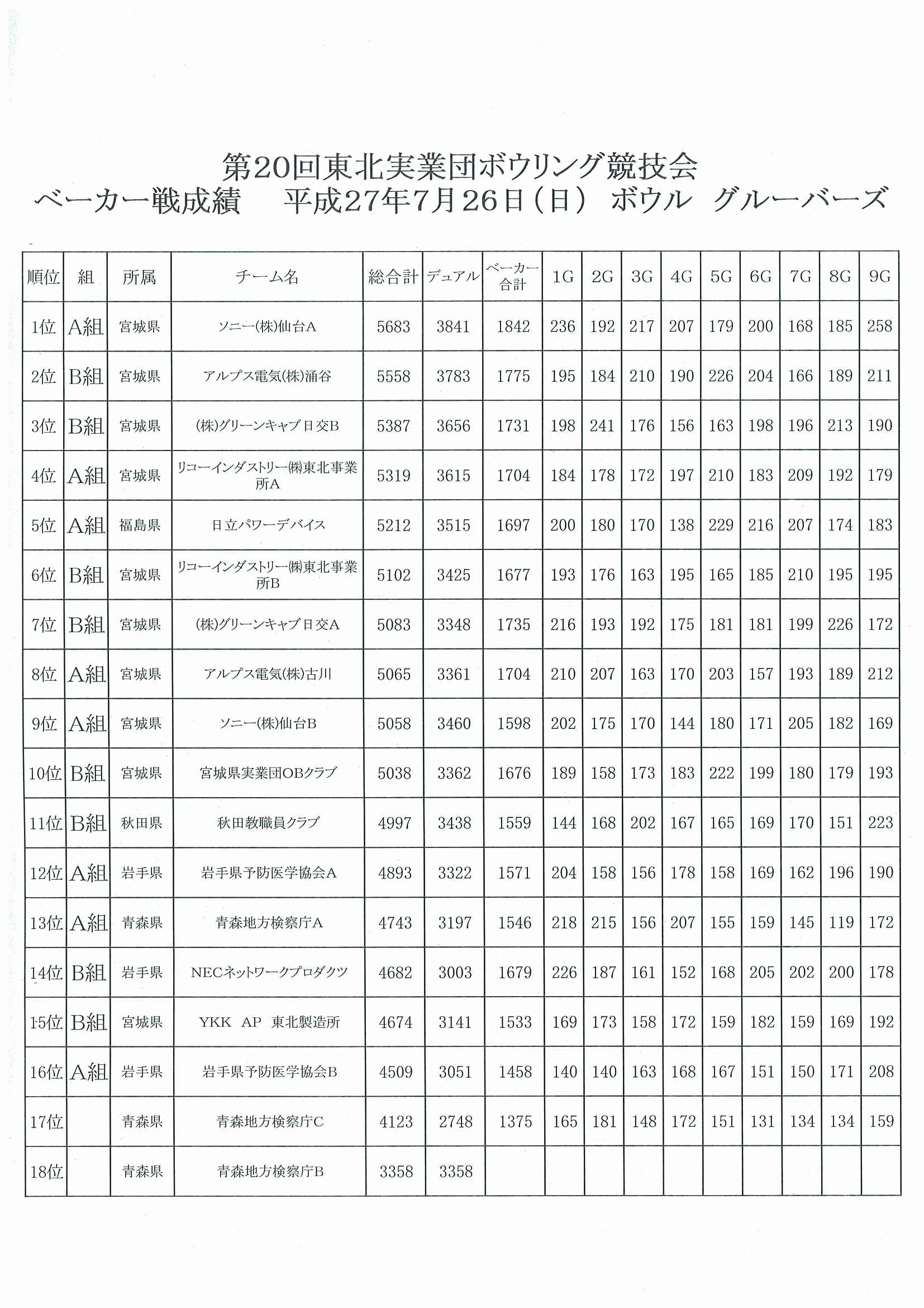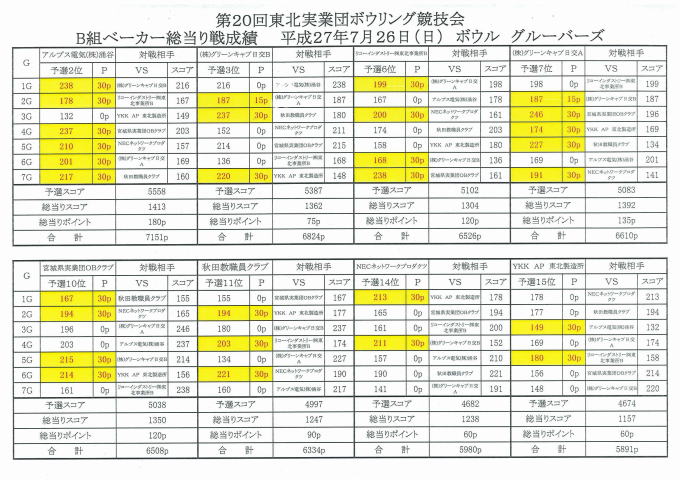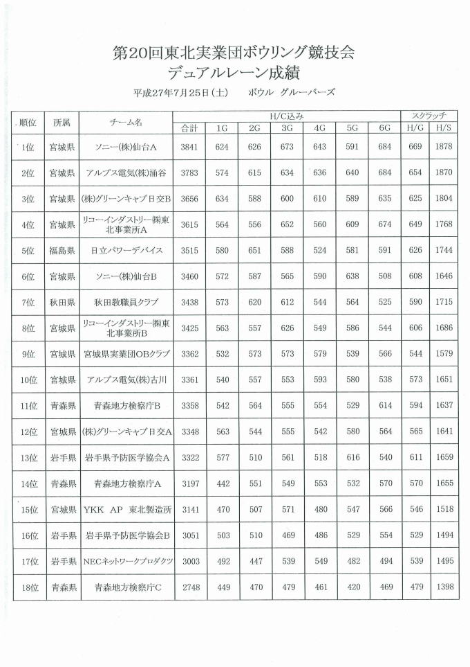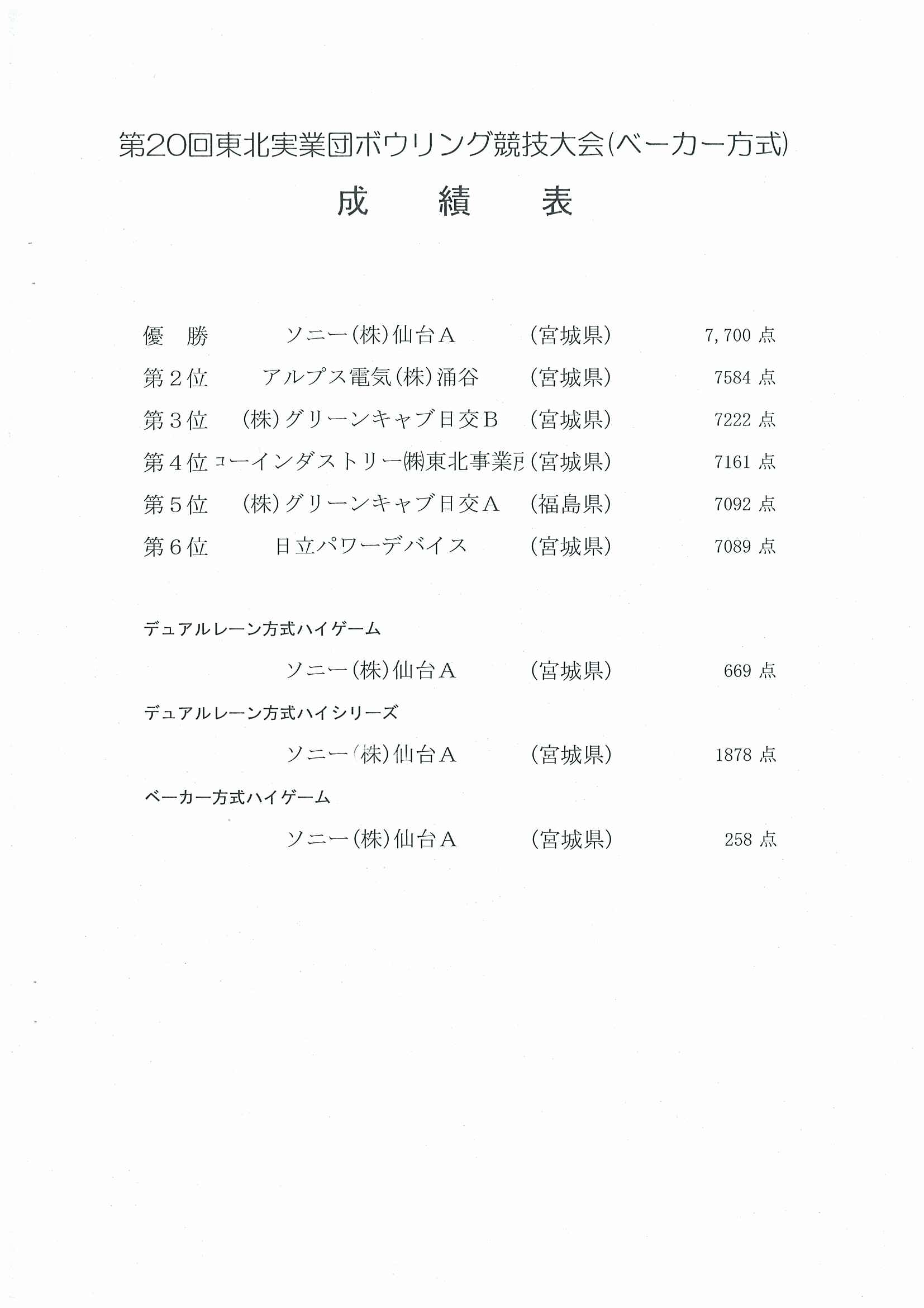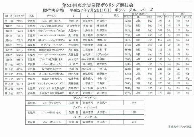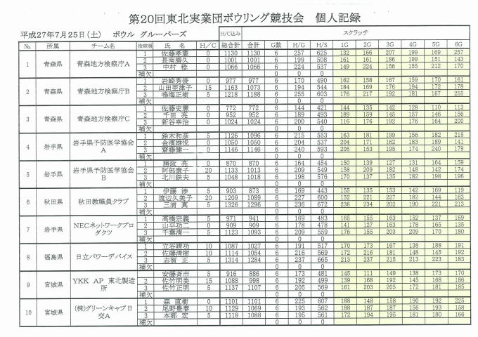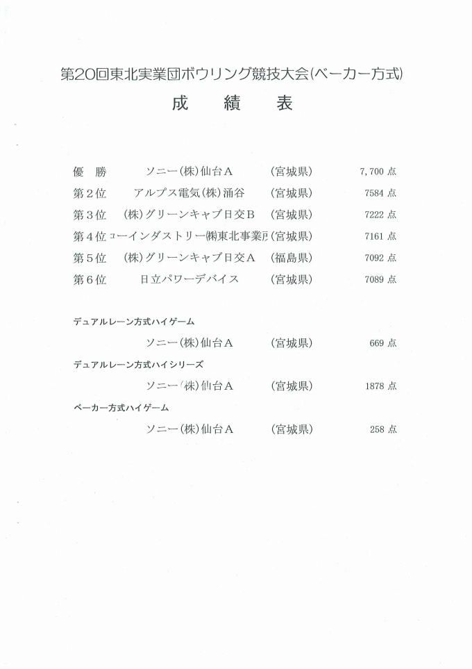 第20回津北実業団ボウリング競技大会(ベーカー方式)