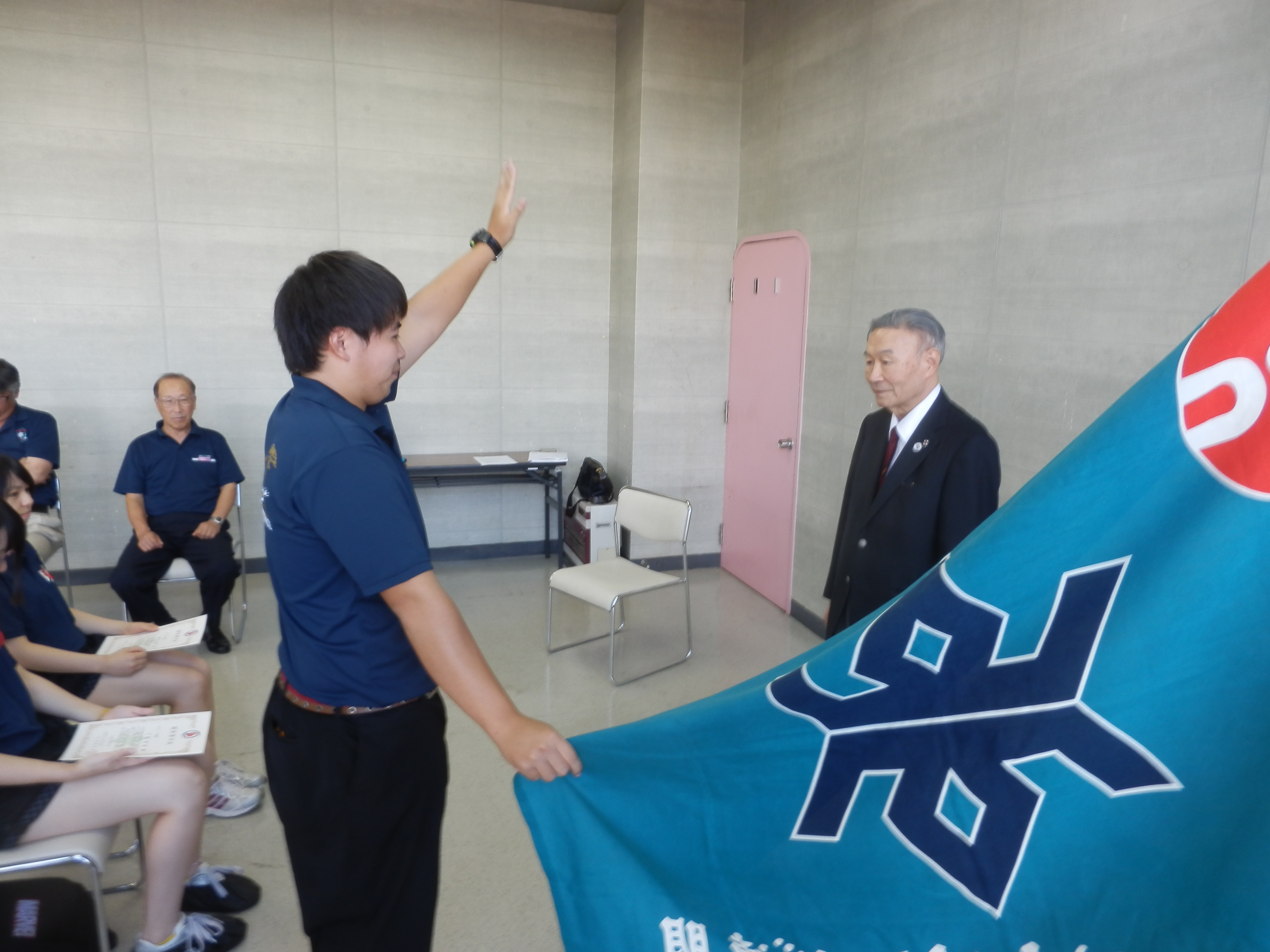 | 国体選手証授与並びに会長から激励のあいさつ |