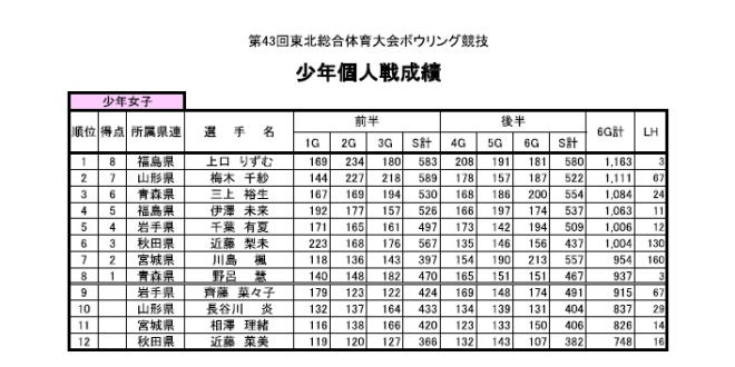 ■少年女子 個人戦成績表 |