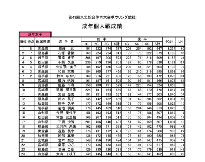■成年女子 個人戦成績表 |