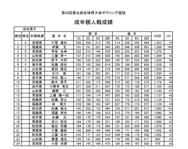 ■成年男子 個人戦成績表 |
