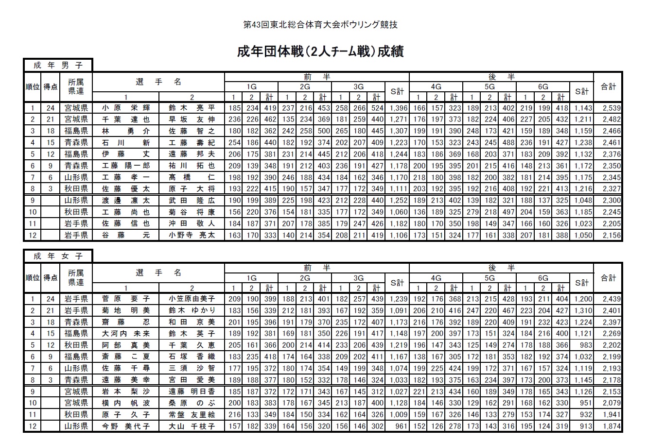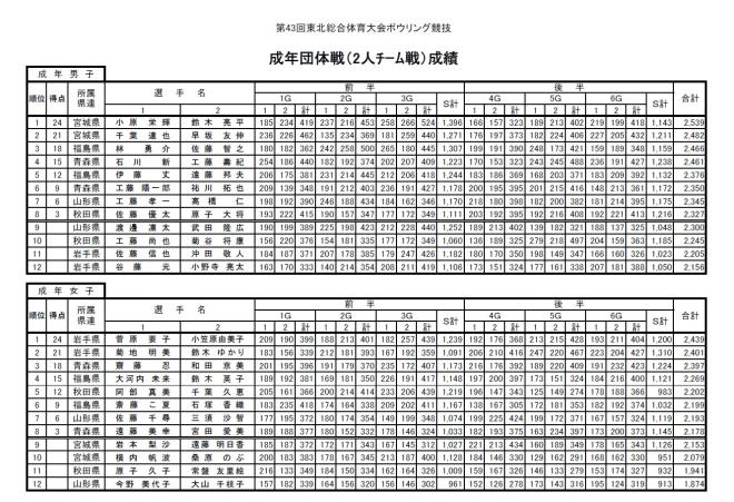 ■成年団体戦 2人チーム戦成績表 |