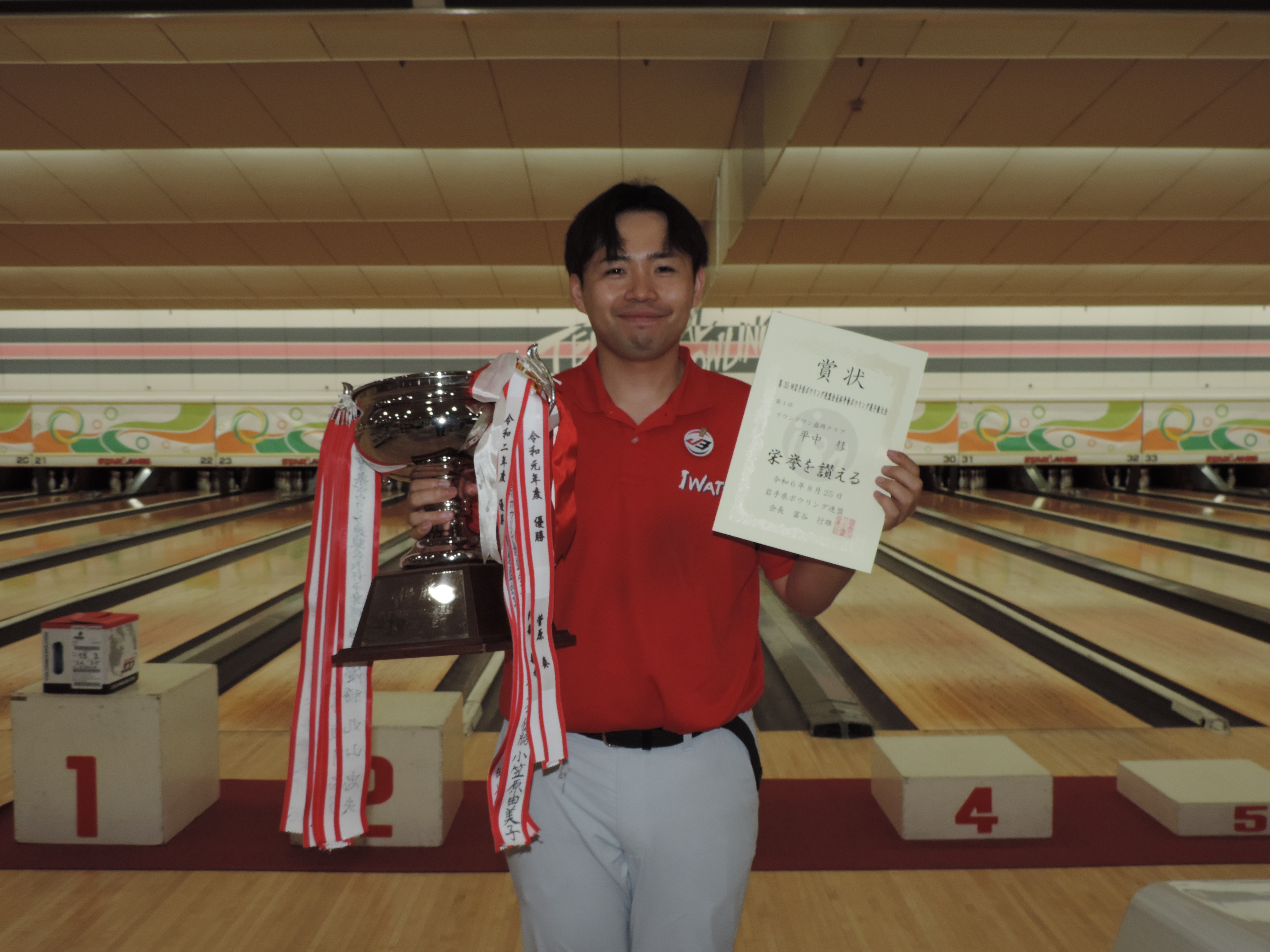 盛岡スターレーン様より優勝した平中選手へ副賞としてボールが提供されました |